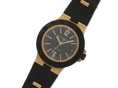 BVLGARI ブルガリ AL38G ディアゴノアルミニウム 自動巻き 黒文字盤 18KYG イエローゴールド/ラバーベルト Dバックル 38.0mm 日常生活防水 ST【472】 【中古】【大黒屋】