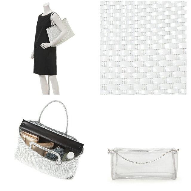 大きさW40cm × H26cm × D14cm 底幅:39cm ハンドルの高さ:16cmサイズの測り方について 素材PVCワイヤー 重さ約680g付属のインナーバッグを含む重さ:約780g 裏地なし ポケットなし バッグの閉じ口なし 製造元アンテプリマ/ワイヤーバッグ