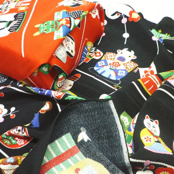 お正月 二巾風呂敷 干支の動物の顔見世レーヨン縮緬風呂敷です。